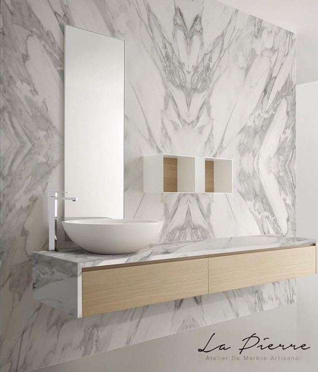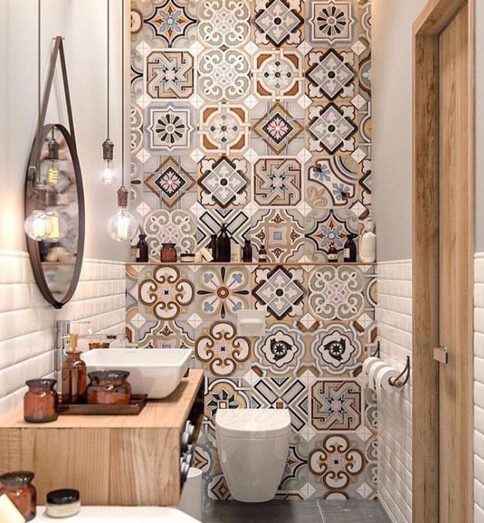 In 2018 we’ve seen a lot of interesting bathroom designs, but one of our favorites is this Italian-style art deco tiling on bathroom walls and floors. What we especially appreciate about this new trend is that it allows for minimal decoration. The heavy styling of the tiles also eliminates the need for paints and any wallpapering. If you do decide to have one wall without tile, we suggest using a subdued variation of the primary tile color to complement your bathroom’s aesthetic.