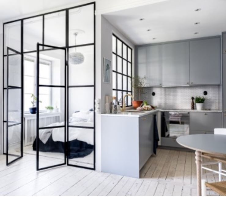 Interior windows are becoming very popular in 2018. They help a room feel bigger and more open, without needing to knock out a wall. You can use your home’s storm, water, or fire damage to turn a portion of wall into a geometric shape like @bryangraybill, or you can cut out a smaller section like @alventosamorell’s shadow box. You can also add a wall where there wasn’t one before like in @livingnordic’s classy black frames.